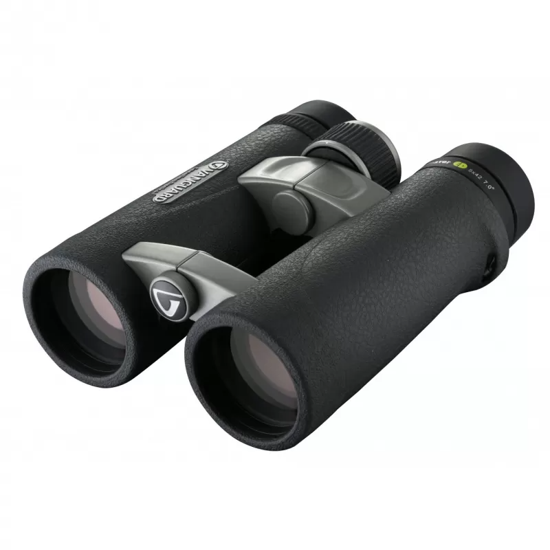 Объективы диаметром 42 мм позволяют эффективно использовать бинокль в разных условиях освещения. Широкое поле зрения облегчает обзор местности, а увеличенное удаление выходного зрачка повышает удобство, в том числе при использовании с очками. Крупное колесо фокусировки обеспечивает точную и быструю настройку резкости.